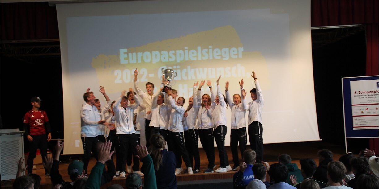 Hipp hipp hurra! Herzlichen Glückwunsch, liebes Sport-Team, für den 1. Platz bei den Europaspielen der deutschen Auslandsschulen! Ihr habt so überragend gespielt, dass ihr auch noch den ersten Platz im Volleyball und in Leichtathletik ergattert habt. Wir sind stolz auf euch! Und nochmals vielen Dank für die großartige Gastschule Deutsche Internationale Schule Brüssel.