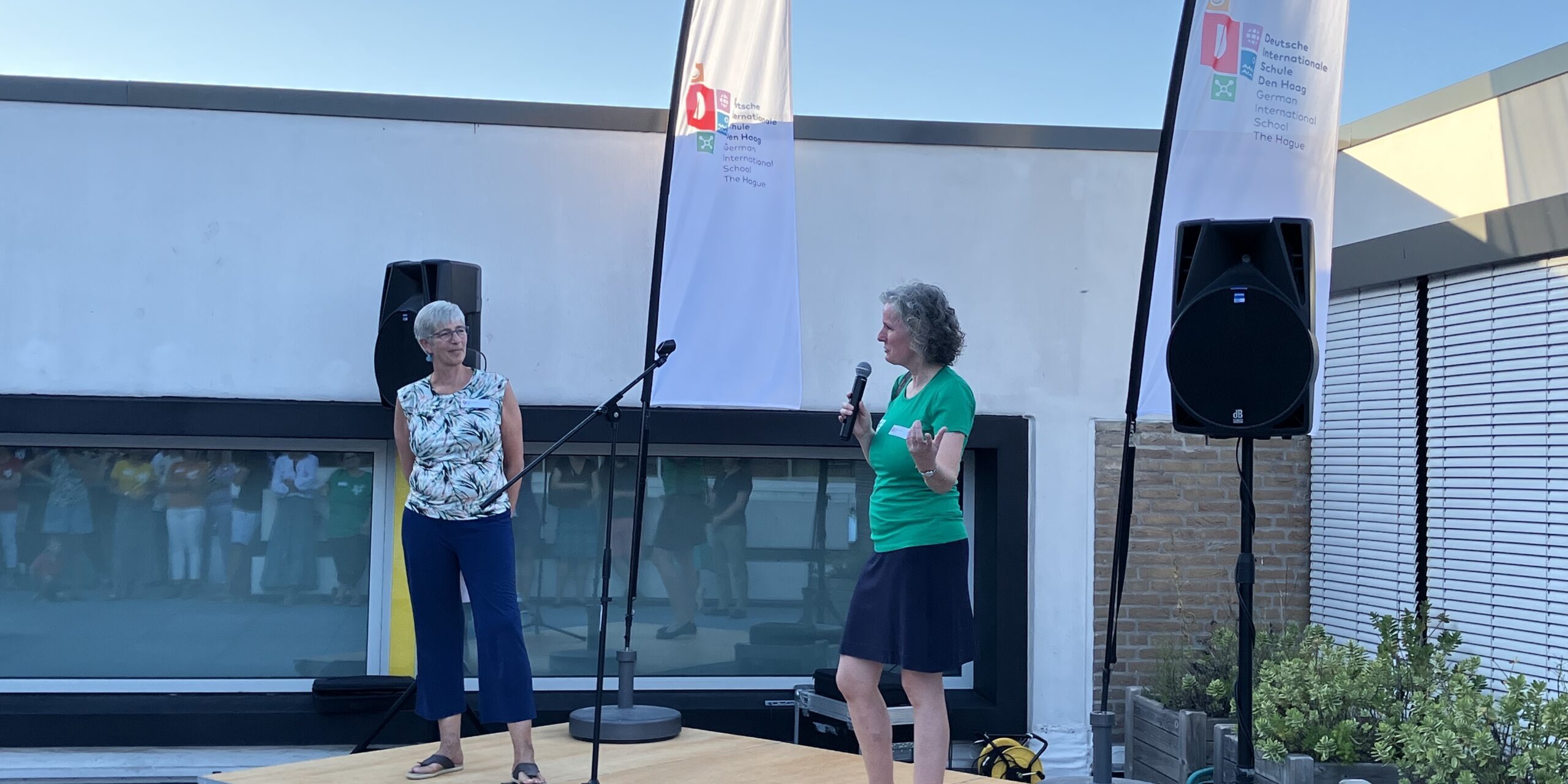 Bei sonnigem Wetter, erfrischenden Getränken und leckeren Würstchen vom Grill fand am Donnerstag der Willkommensborrel des Vorstandes statt. Es wurden die neuen Kolleg:innen begrüßt und der Schulgemeinde vorgestellt. Auch konnte die alljährliche Kunstausstellung mit Werken kreativer Eltern besichtigt werden. Ein großes Dankeschön geht an die Helfer:innen aus der 12. Klasse, die den Abend fantastisch unterstützt haben.